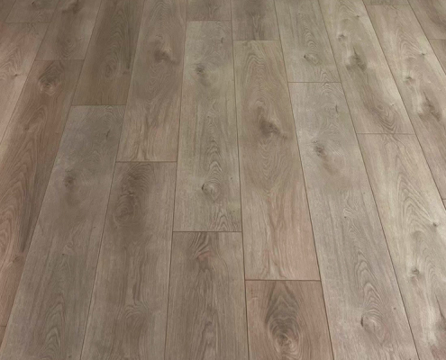使用木材纖維或木屑與膠合劑混合,在高溫高壓下壓製成HDF高密度纖維板做為基底,表面加上特殊印刷圖層與透明耐磨層的木質地板